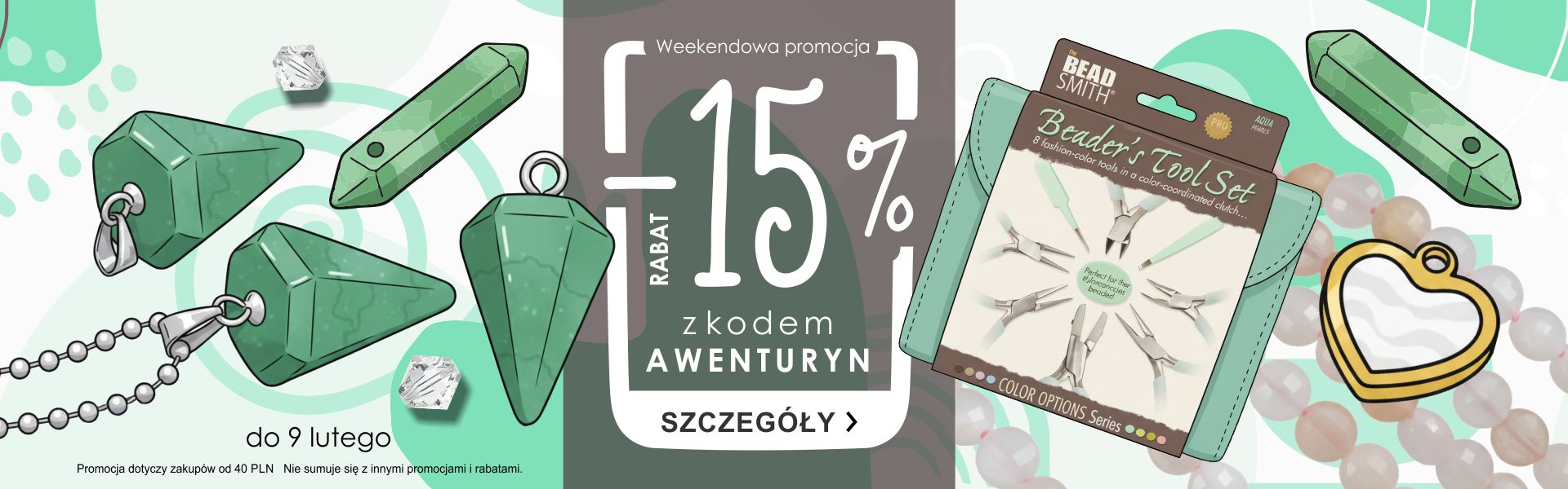 Oferujemy również szeroki wybór narzędzi jubilerskich, klejów do biżuterii, igieł do koralików, akcesoriów do makramy, szczypiec, mat i organizerów, dzięki czemu nasz sklep jest miejscem kompletnym od pomysłu, przez narzędzia i materiały, aż po gotowy wyrób.