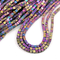 Lawa wulkaniczna platerowana fioletowo-złota kostka 4,5mm [sznur 39cm]