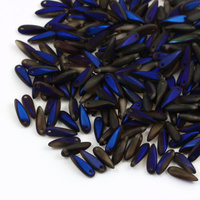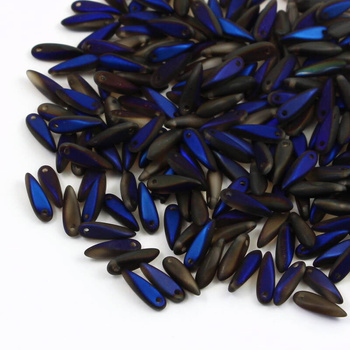 Koraliki Dagger beads to szklane koraliki w kształcie grota z jednym otworem u nasady koralika. Występują w 2 rozmiarach - długie Dagger beads mają wymiary 5x16mm i są zbliżone wyglądem do krawatów, natomiast małe koraliki Dagger mają wymiary3x10mm. Daggers najczęściej używane są do wykończeń w projektach sutaszowych i beadingowych. Na blogu pokazujemy m.in. jak zrobić stokrotkę z grotów o różnej długości. Krótkie daggery są znakomitym dopełnieniem kolczyków tzw. Indiańców, które w ostatnim czasie są bardzo popularne. W sutaszowych projektach, szczególnie kolczykach, efektownym wykończeniem jest szpic z Daggera obszyty jednym lub dwoma pasmami sutaszu. Znacznie wydłuża to kolczyki nie powodując, że ich waga znacząco wzrośnie.