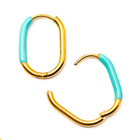 Bigle emaliowane owalne stal szlachetna pozłacana turkusowe 20x15mm [para]
