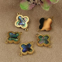 Łącznik kwiatek z muszlą paua stal szlachetna pozłacana PVD 15x11mm