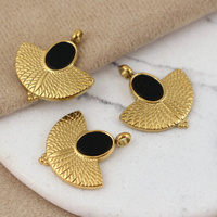 Zawieszka wachlarz z czarnym oczkiem stal szlachetna pozłacana 21x20mm