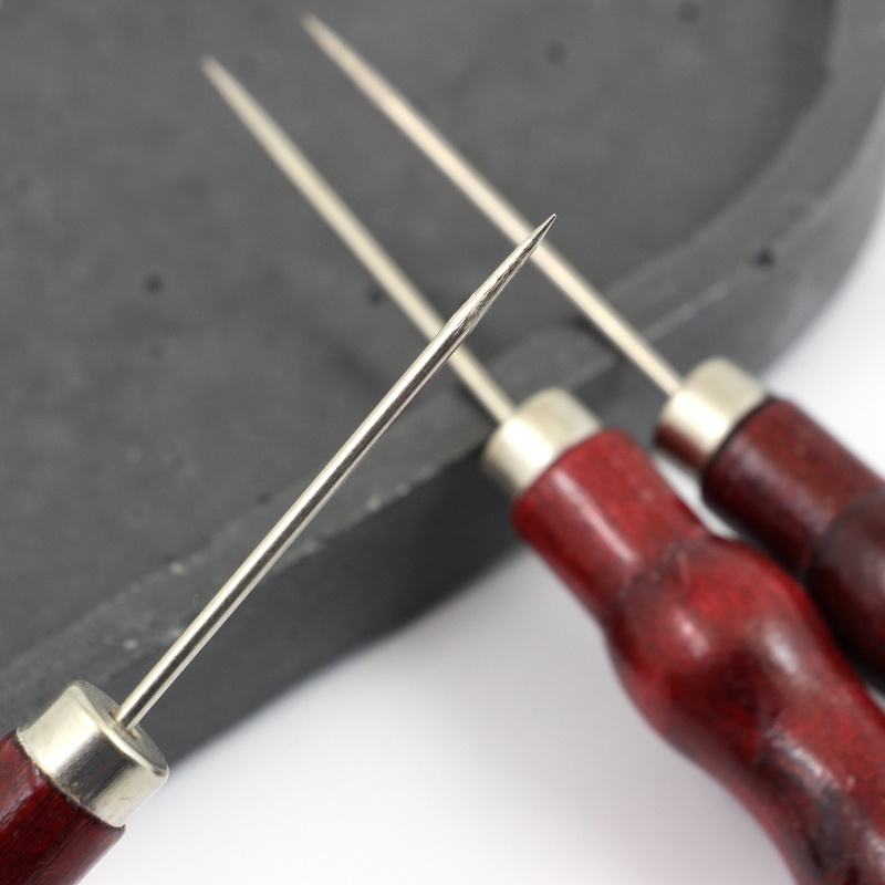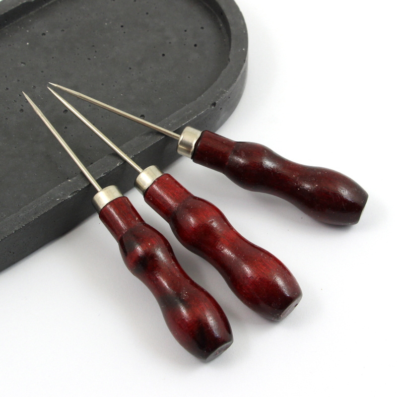 Szpikulec z drewnianą, lakierowaną rączką. Pomaga w udrażnianiu dziurek korali, wykonywaniu otworów w skórze i filcu itp. pracach ręcznych.