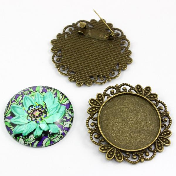 Baza do kaboszonu okrągła mosiężna broszka 30mm [1szt]