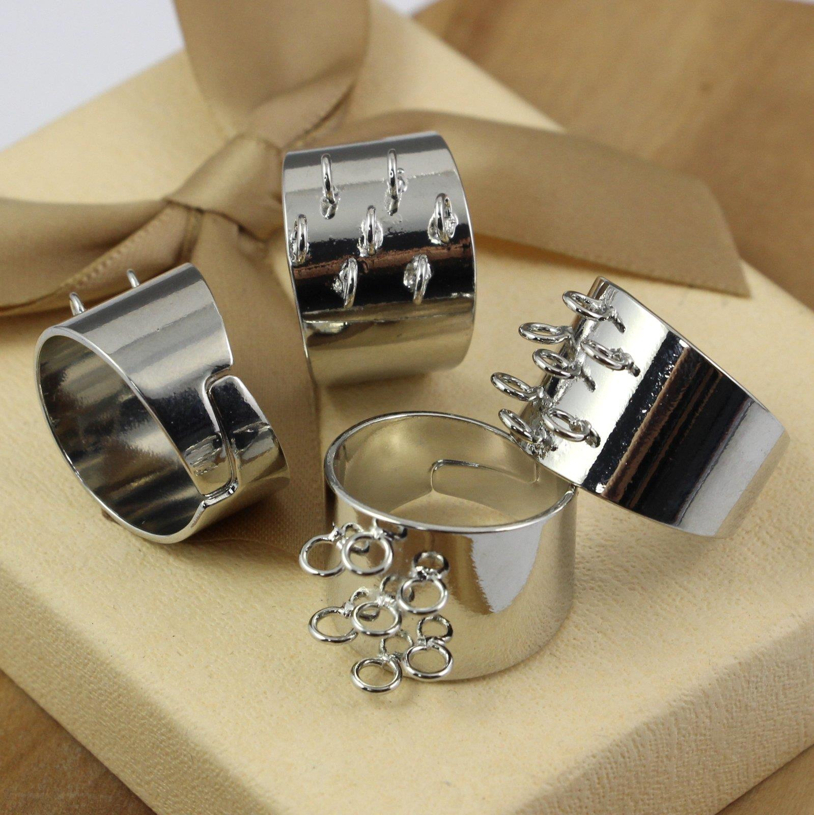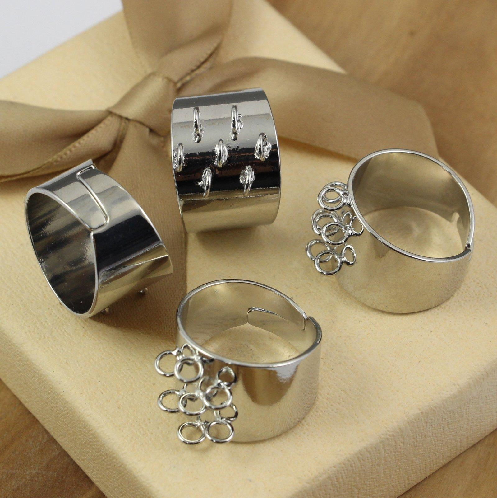 OpisPodstawa (baza) do pierścionków z 7 oczkami do zamontowania kamieni i koralików na szpilce. Obrączka zwężająca się lekko na końcach jest gładka.