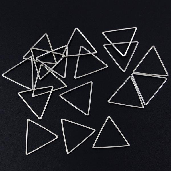 Metalowy element w kształcie trójkąta równobocznego do wykorzystania jako baza geometryczna do beadingu, element łączący (łącznik) korale w naszyjniku lub jako zawieszka na drobnym łańcuszku. Element jest ultra lekki, można go również wkomponować w projekty sutaszowe.