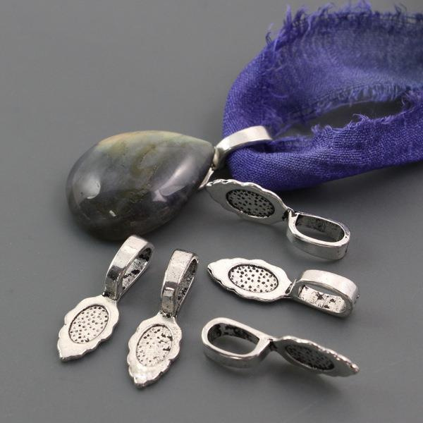 Metalowa, klasyczna krawatka do naklejania elementów ozdobnych. Dość duże oczko 7x5mm Powierzchnia listka do klejenia - 15x8,5mm Długość całego elementu - 24mm
