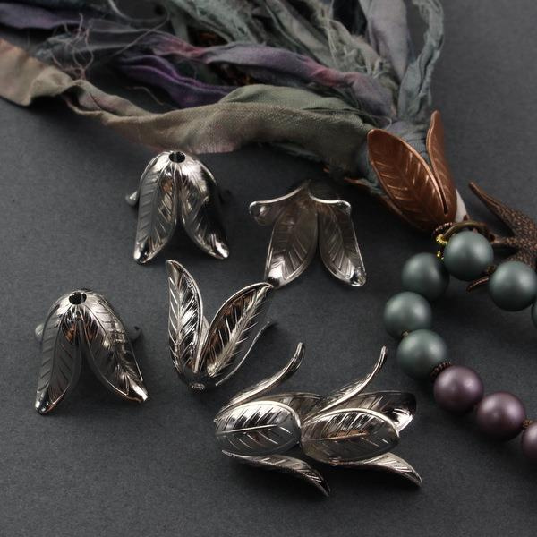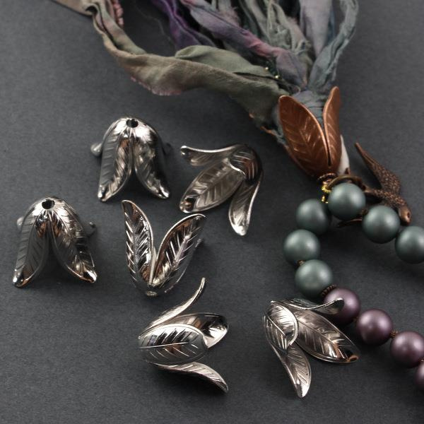 Lekkie, metalowe tulipanki, które można wykorzystać jako “tulejka – zakończenie” wieńcząca sznurki, chwosty – dla przykładu prezentujemy dodatkowe zdjęcie naszyjnika z tym elementem.