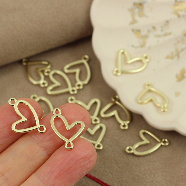 Metalowy element w kształcie serca do zastosowania jako łącznik lub zawieszka. Idealnie sprawdzi się w projektach mikromakramy np. bransoletkach plecionych lub jako zawieszka / przekładka do naszyjnika, lub kolczyków, świetny jako baza do projektów beadingowych i sutaszowych.