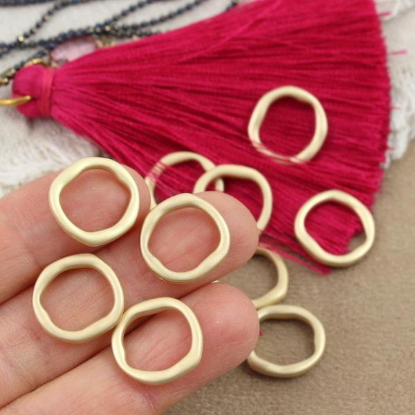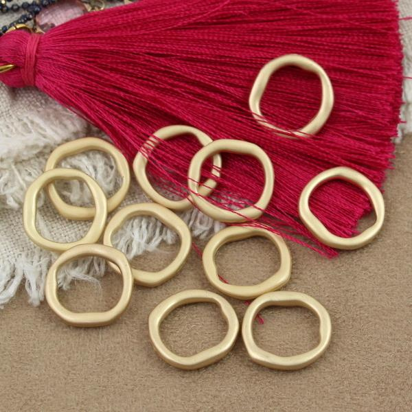 OpisMetalowa ramka - baza do biżuterii w kształcie nieregularnego okręgu. Powierzchnia bazy lakierowana co daje satynowe wykończenie w kolorze jasnego, chłodnego złota. Idealna do bransolet, breloków i naszyjników, a także kolczyków - ramka jest lekka. Polecamy w beadingu i sutaszu lub jako element dużych naszyjników z kamieniami.