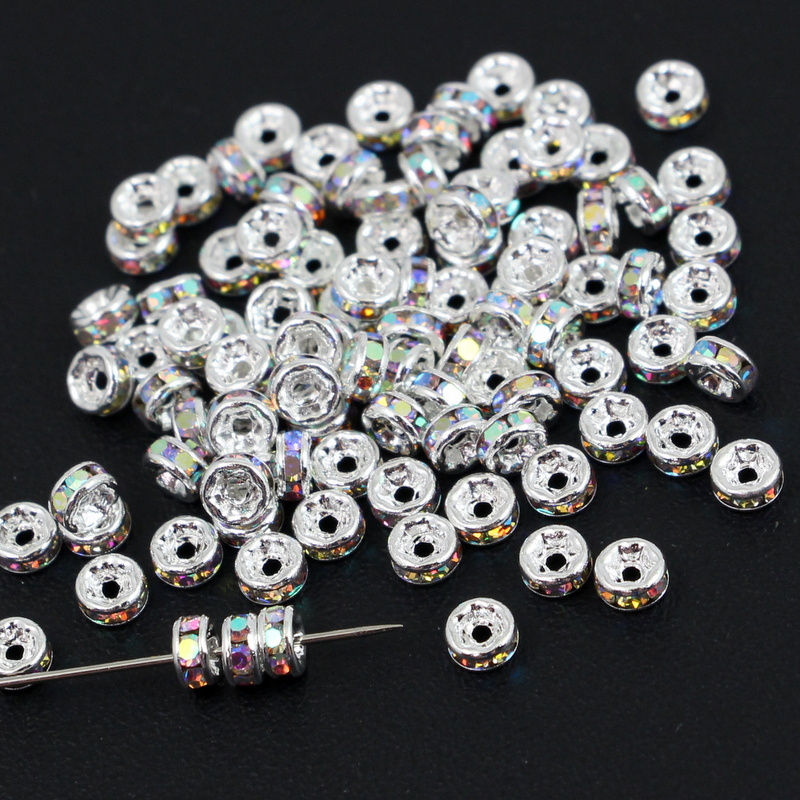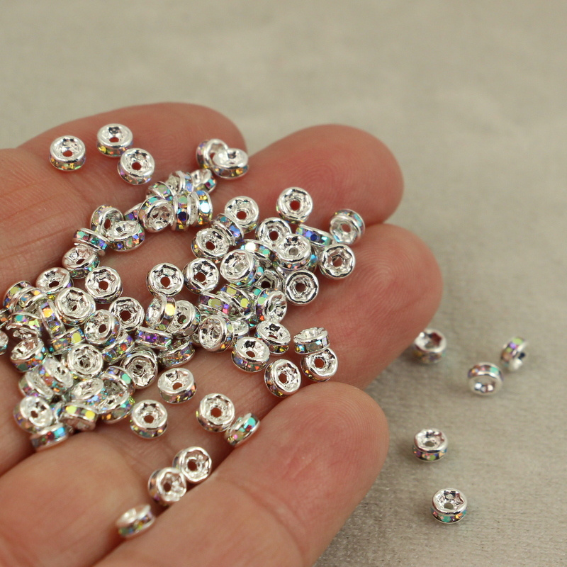 Przekładka oponka z cyrkoniami silver/crystal AB 6mm [10szt]