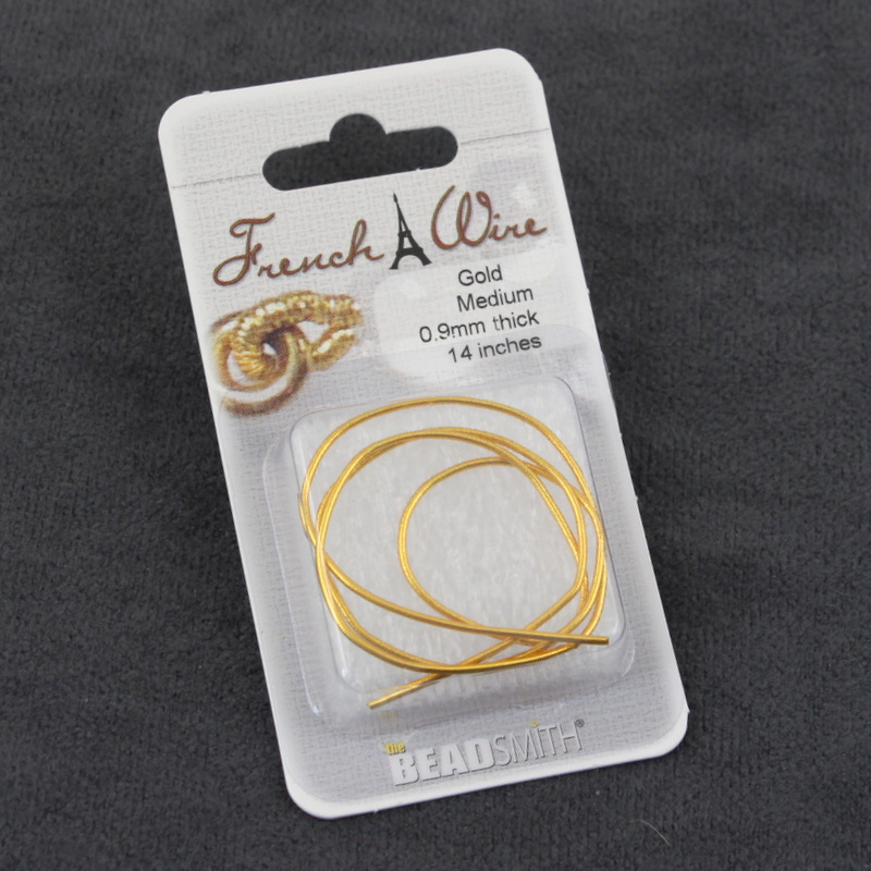 Drut francuski metalowy w kolorze złotym służy do zabezpieczania linek/nici przy montażu zapięć. Chroni nici przed przetarciem.