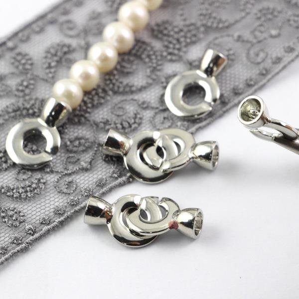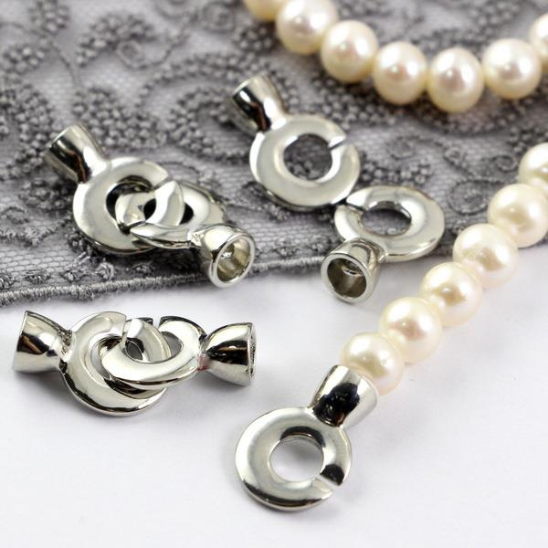 OpisŁadnie wykonane, gładkie i błyszczące zapięcia zahaczane w postaci 2 obrączek z tulejkami. W tulejkach zaczep na nici. Polecamy do kamieni, pereł itp.