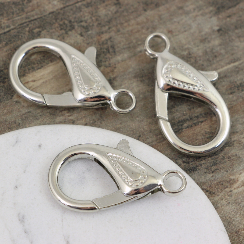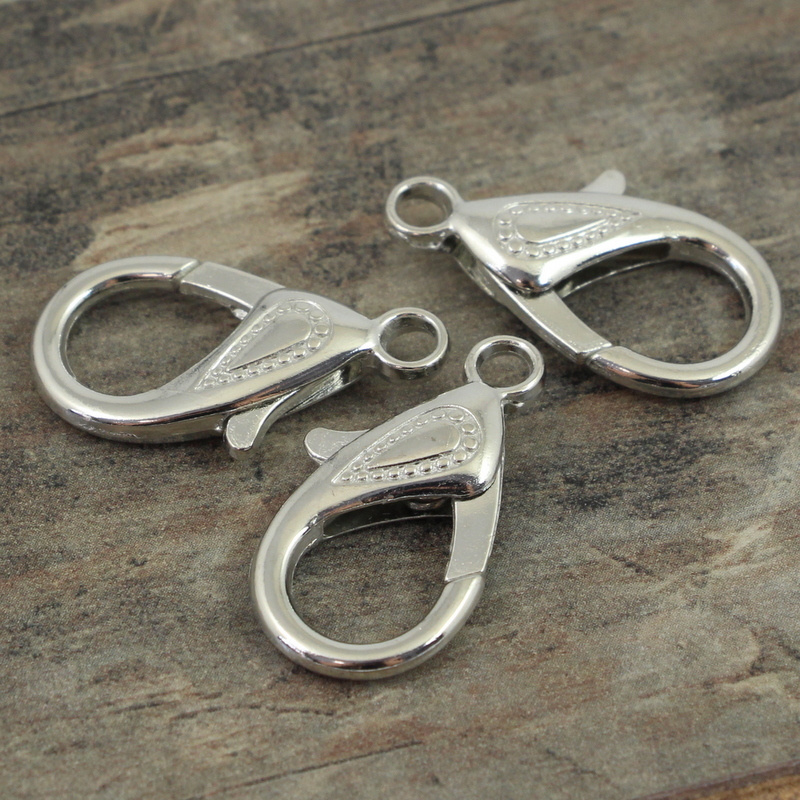 Zapięcie karabińczyk metalowy jasny srebrny 30mm