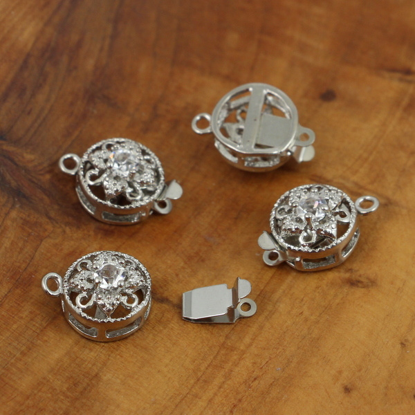 Zapięcie metalowe wsuwane z cyrkonią srebrne 12mm