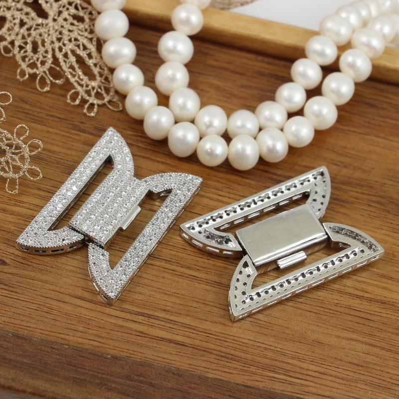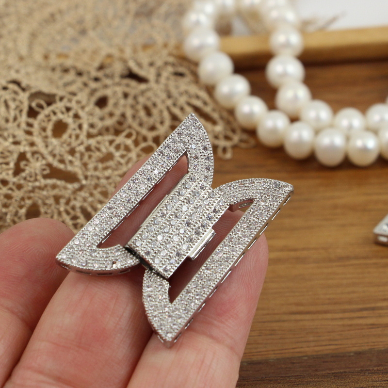 Zapięcie metalowe z cyrkoniami srebrne HQ 35x24mm