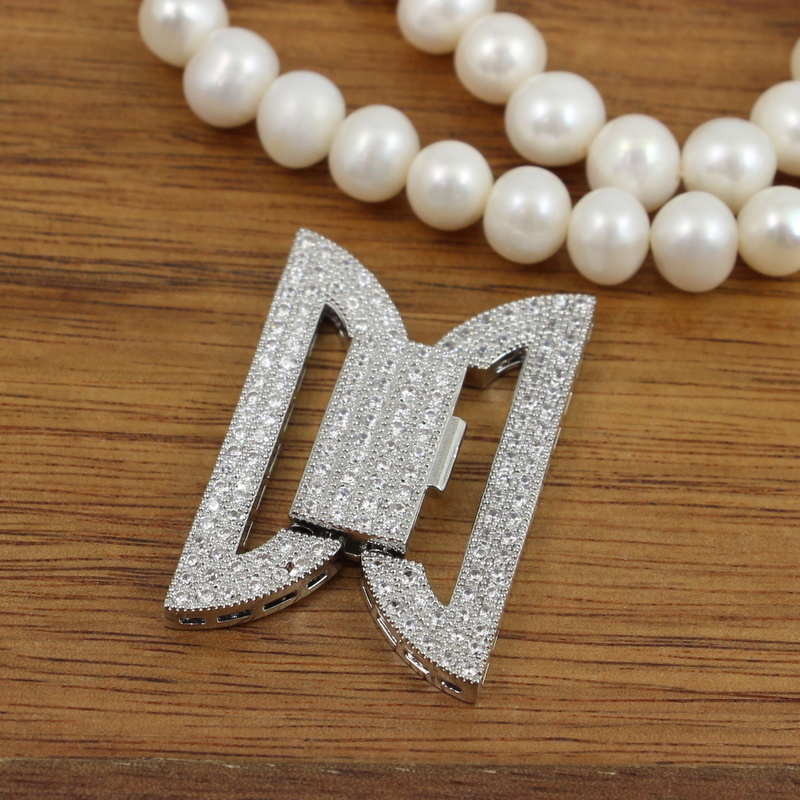 Wysokiej jakości, pięknie zdobione cyrkoniami duże zapięcie typu zegarkowego.