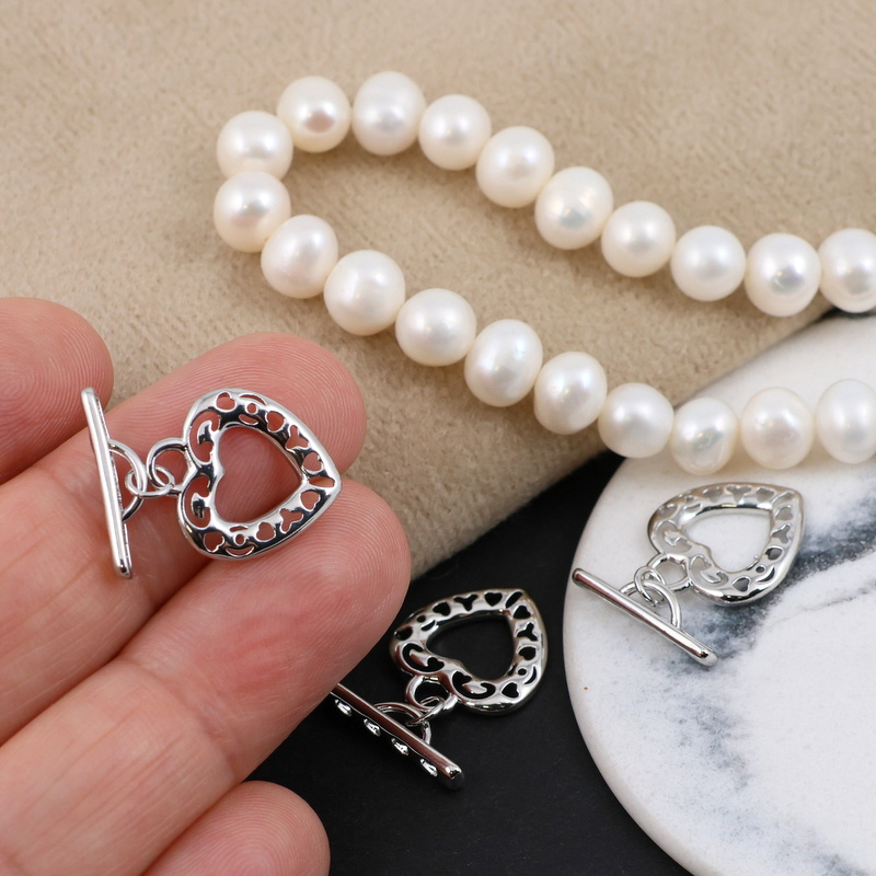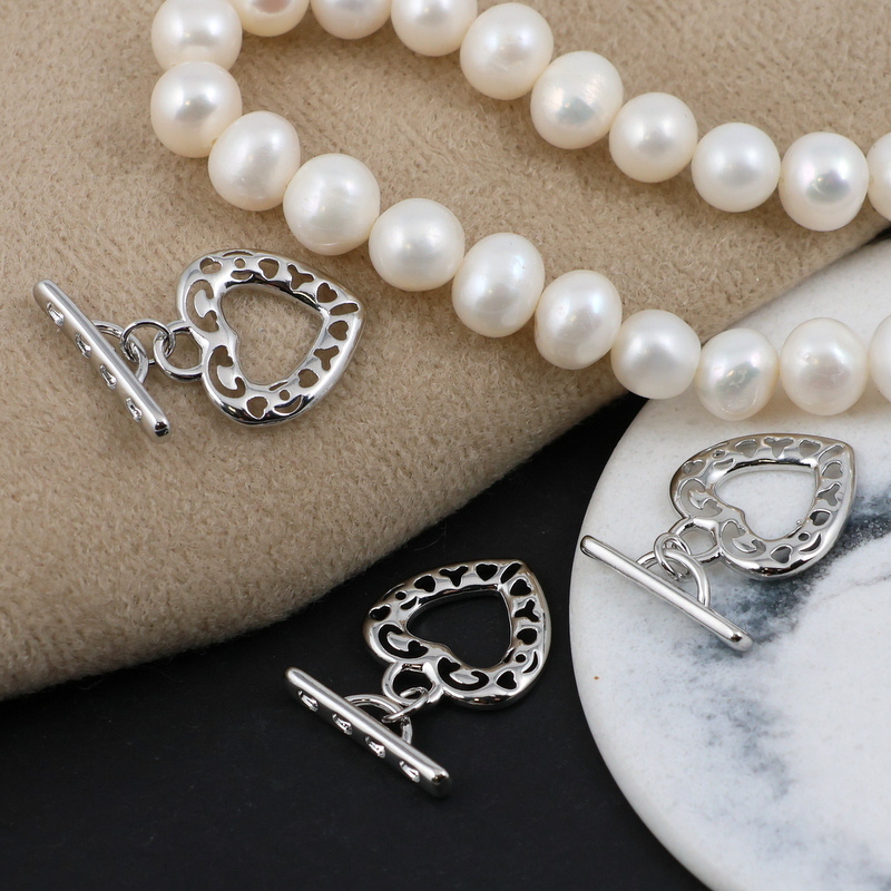 Zapięcie typu toggle w kształcie serca, ażurowe.