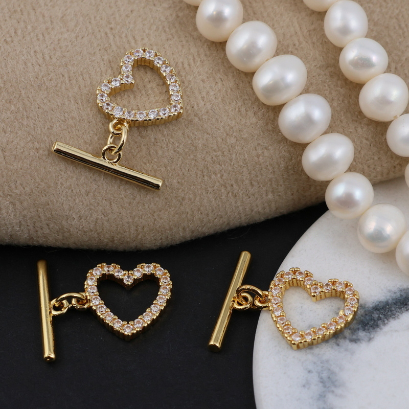 Zapięcie toggle serce z cyrkoniami mosiądz pozłacany 12mm