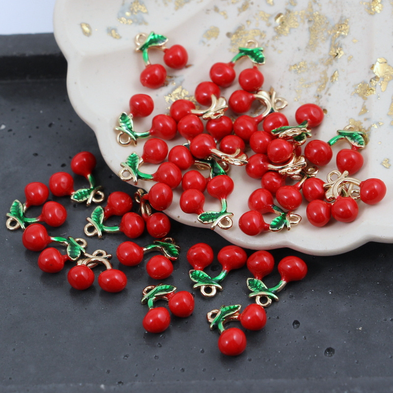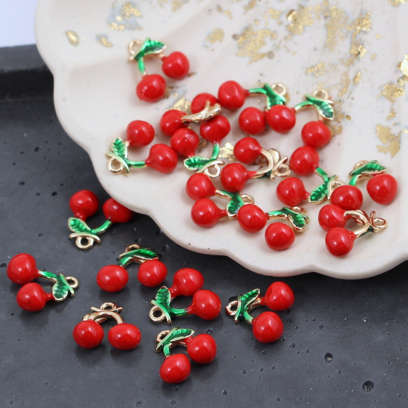 Zawieszka 3D metalowa emaliowana wiśnia owoce 12x12mm