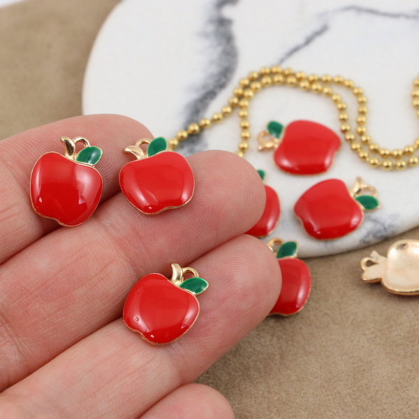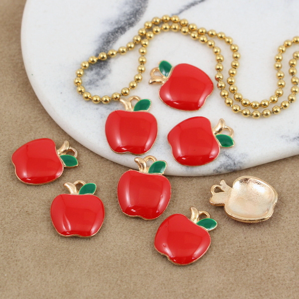 Metalowa zawieszka w kształcie czerwonego jabłka.