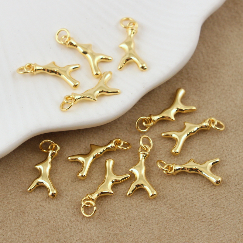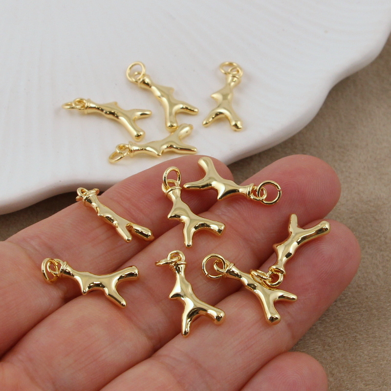 Zawieszka gałązka korala mosiądz złocony 18x9mm