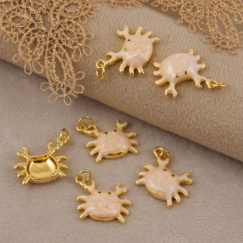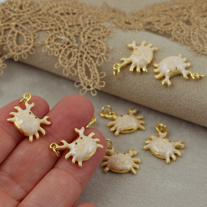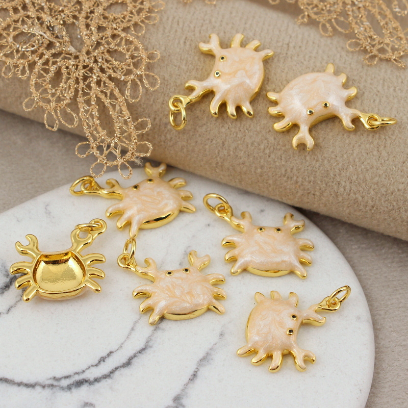 Zawieszka krab mosiądz złocony emaliowana 17x13mm