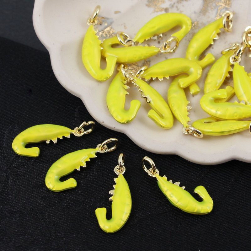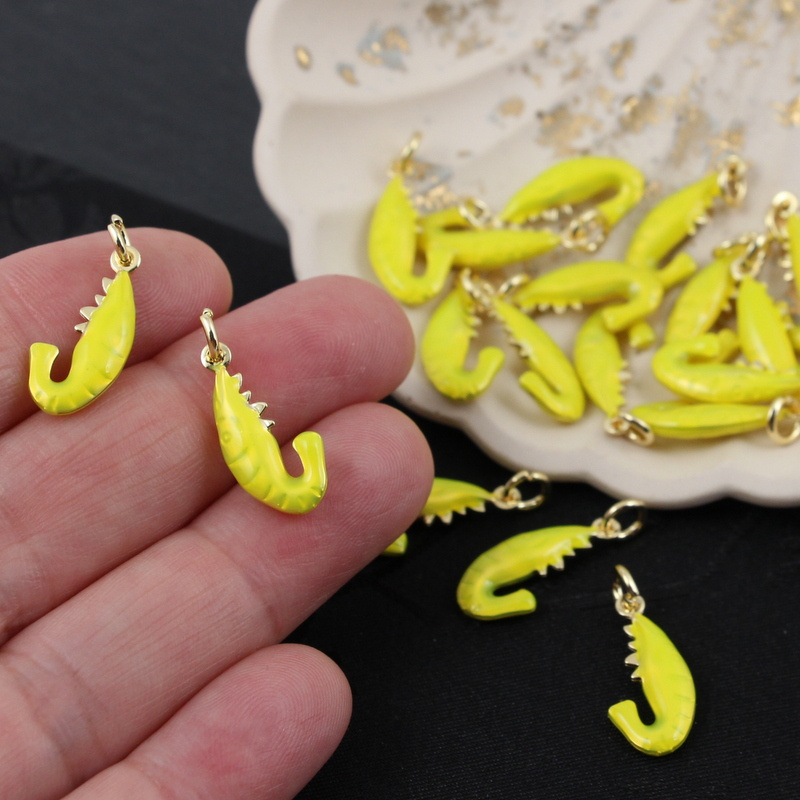 Zawieszka krewetka mosiądz złocony emalia limonka 20x9mm