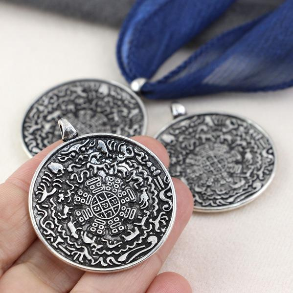 OpisOryginalny, precyzyjnie wykonany duży medalion / tarcza - zawieszka na wisior. Można wykorzystać do beadingu i sutaszu.