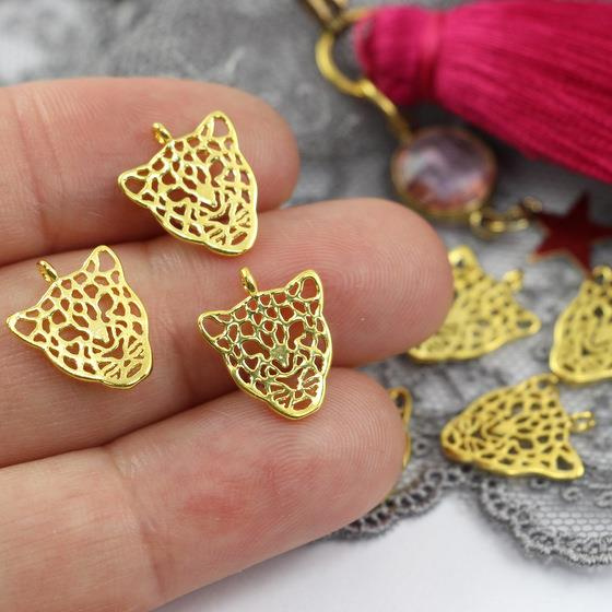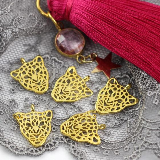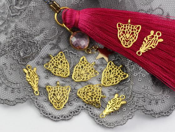 Dokładnie wykonana, ażurowa zawieszka - głowa geparda w kolorze złotym. Do bransolet, wisiorów i naszyjników.