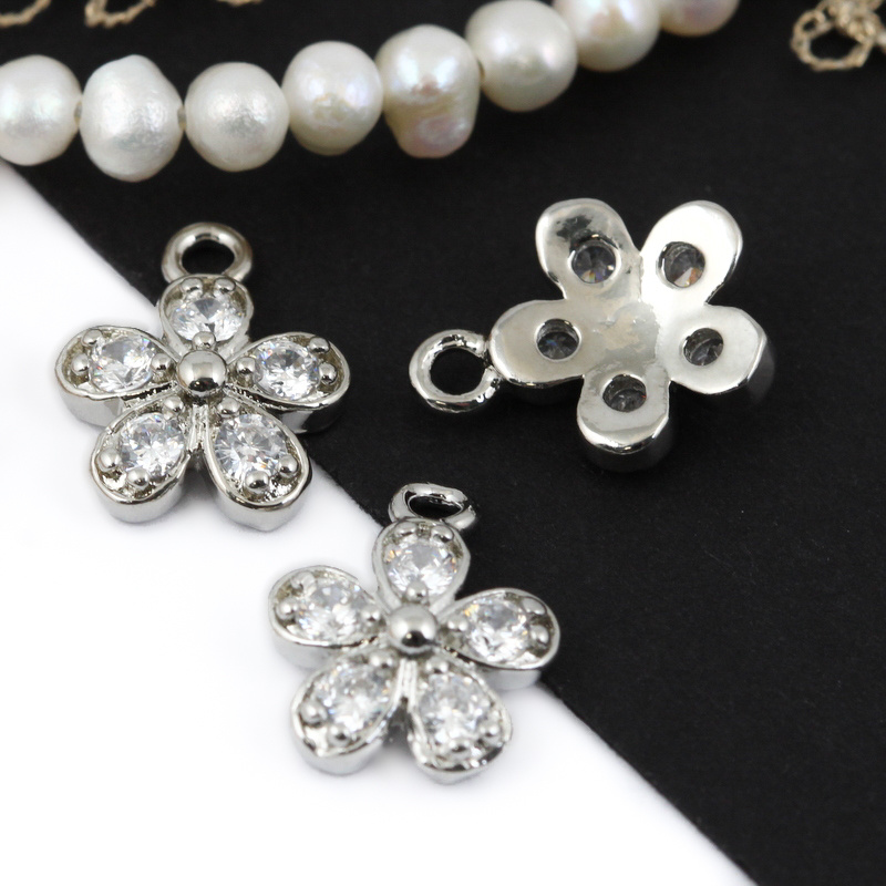 Zawieszka metalowa mosiądz kwiat z cyrkoniami 13mm