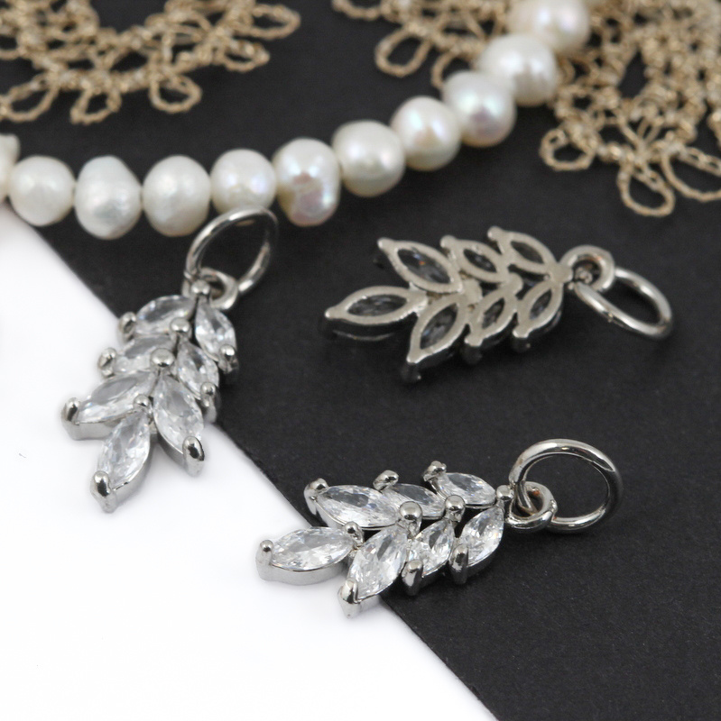 Zawieszka metalowa mosiądz liść z cyrkoniami 17mm