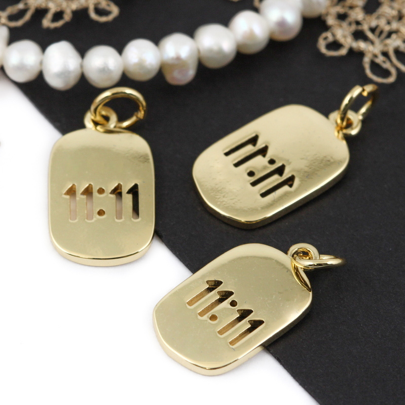Zawieszka metalowa mosiądz złocony blaszka godzina 11:11