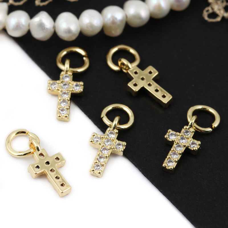 Zawieszka metalowa mosiądz złocony krzyż z cyrkoniami 10mm