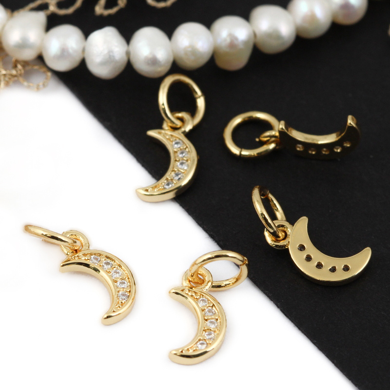 Zawieszka metalowa mosiądz złocony księżyc z cyrkoniami 9mm