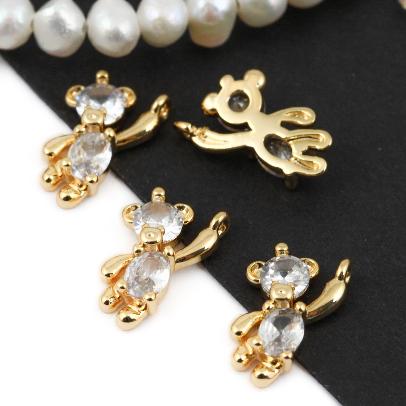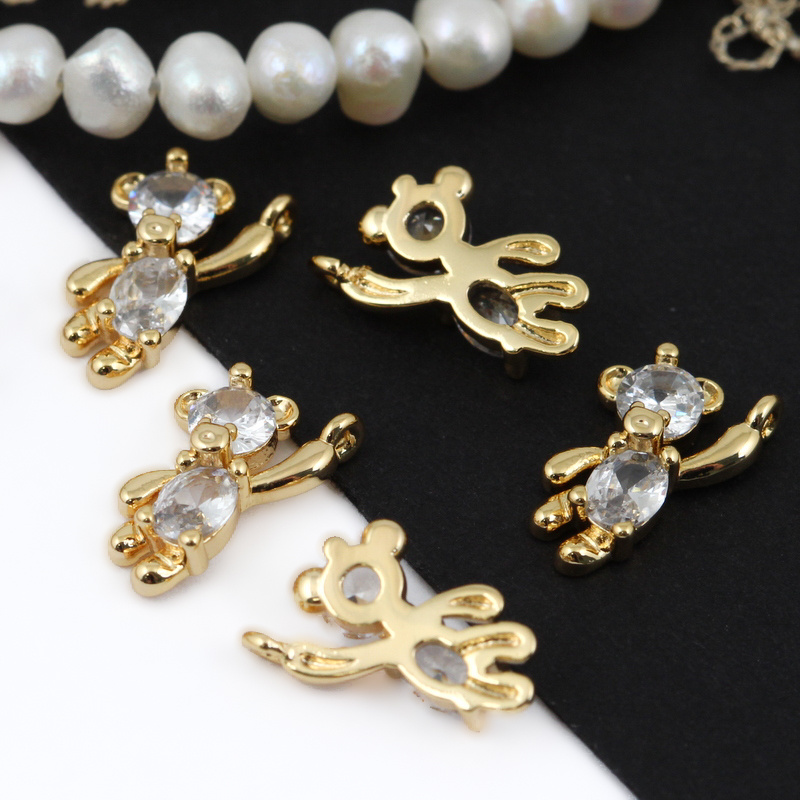Zawieszka metalowa mosiądz złocony miś z cyrkoniami 11mm