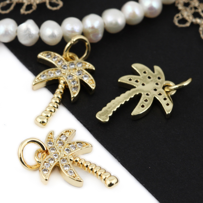 Zawieszka metalowa mosiądz złocony palma z cyrkoniami 15mm