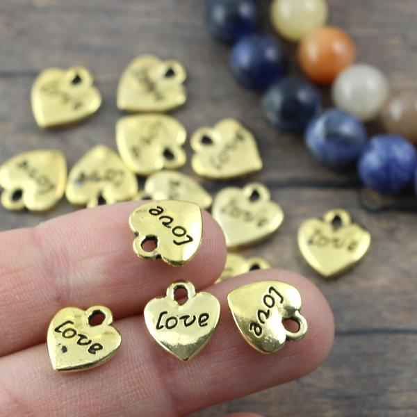 Zawieszka - złote serduszko, lekko wypukłe z napisem "Love". Zawieszka, dwustronna, lekka. Polecamy do naszyjników, bransolet i kolczyków.