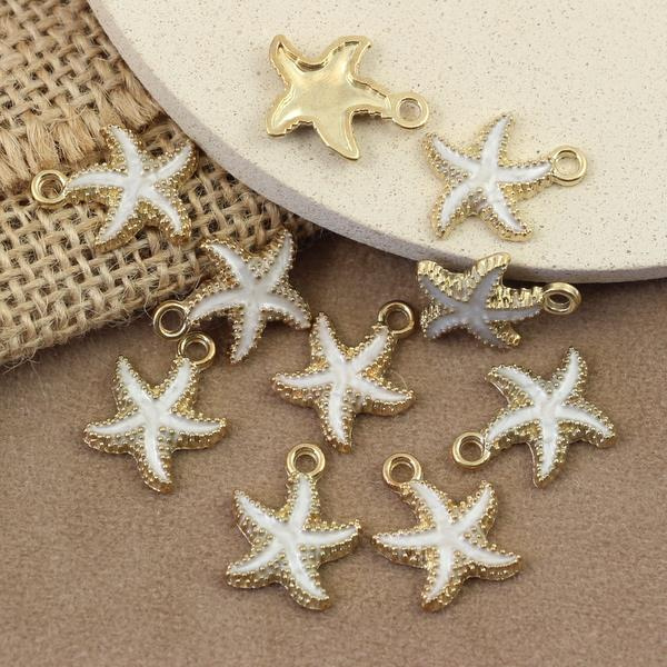 Zawieszka metalowa złota emaliowana biała rozgwiazda 18x15mm
