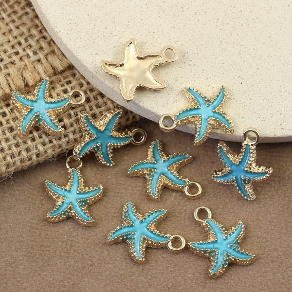 Zawieszka metalowa złota emaliowana niebieska rozgwiazda 18x15mm