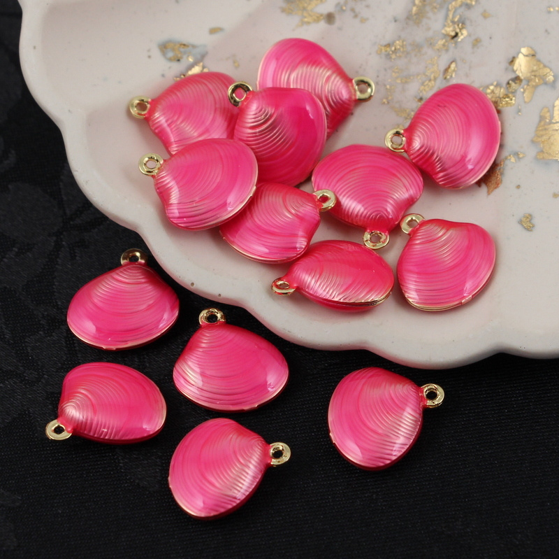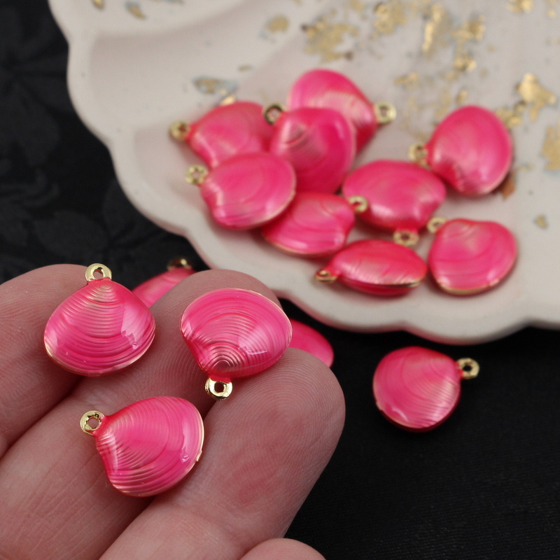 Zawieszka muszla mosiądz złocony emalia mocny róż perłowy 14mm