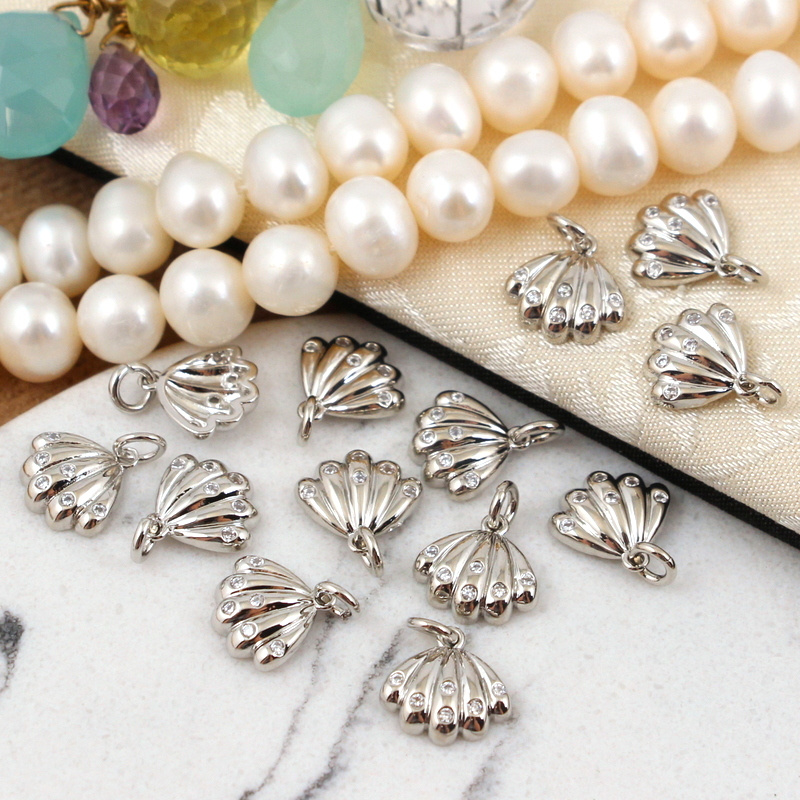 Zawieszka muszla z cyrkoniami mosiądz 10mm
