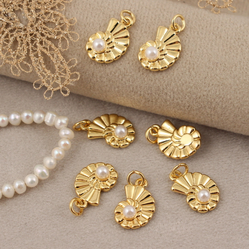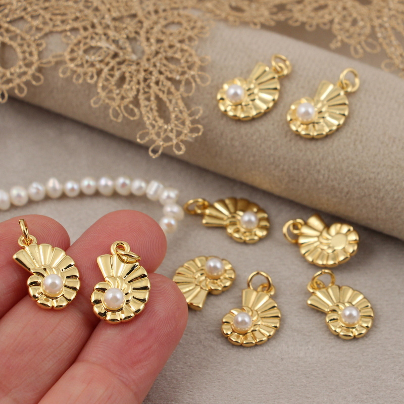 Zawieszki w morskim klimacie - muszelki wykonane z mosiądzu z plastikową perełką.
