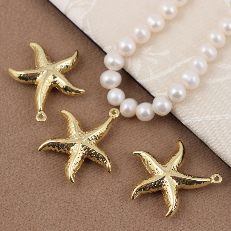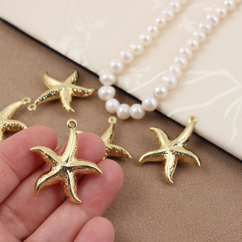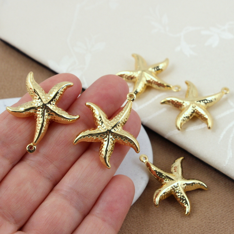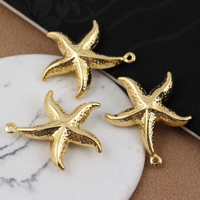 Duża zawieszka w kształcie rozgwiazdy, wypukła, lekka, wykonana z metalu (mosiądz złocony). Idealna do naszyjników.