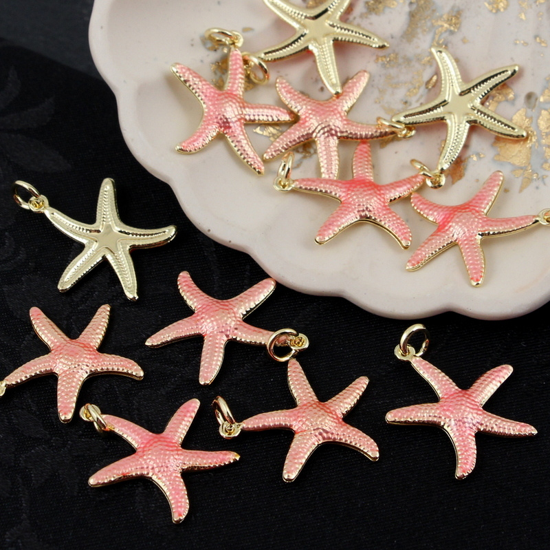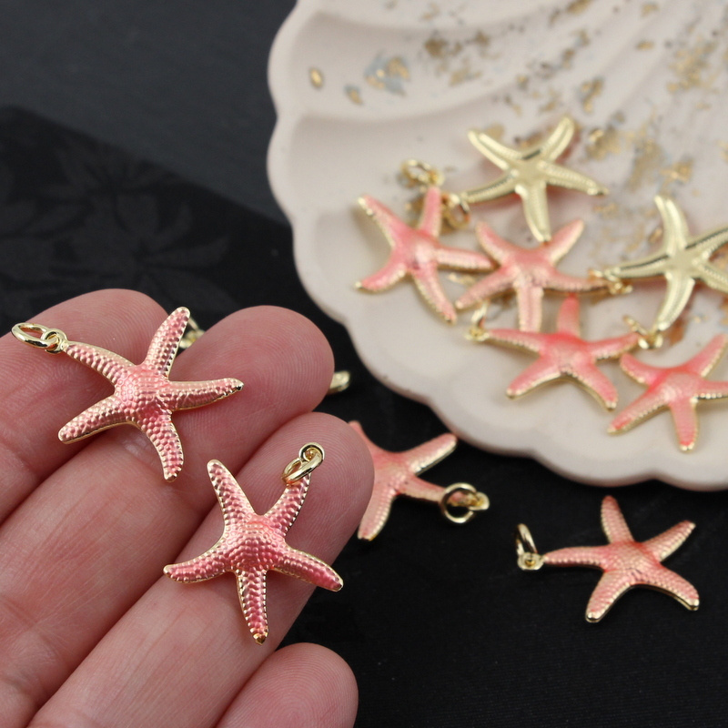 Zawieszka rozgwiazda mosiądz złocony emalia róż perłowy 22mm