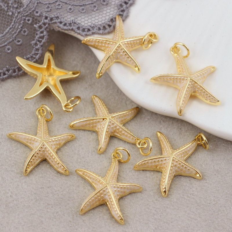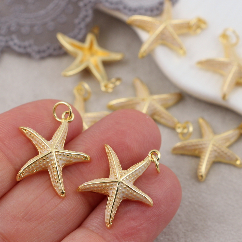 Zawieszka rozgwiazda mosiądz złocony emaliowana kremowa 18mm