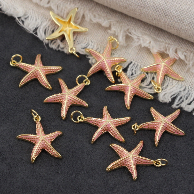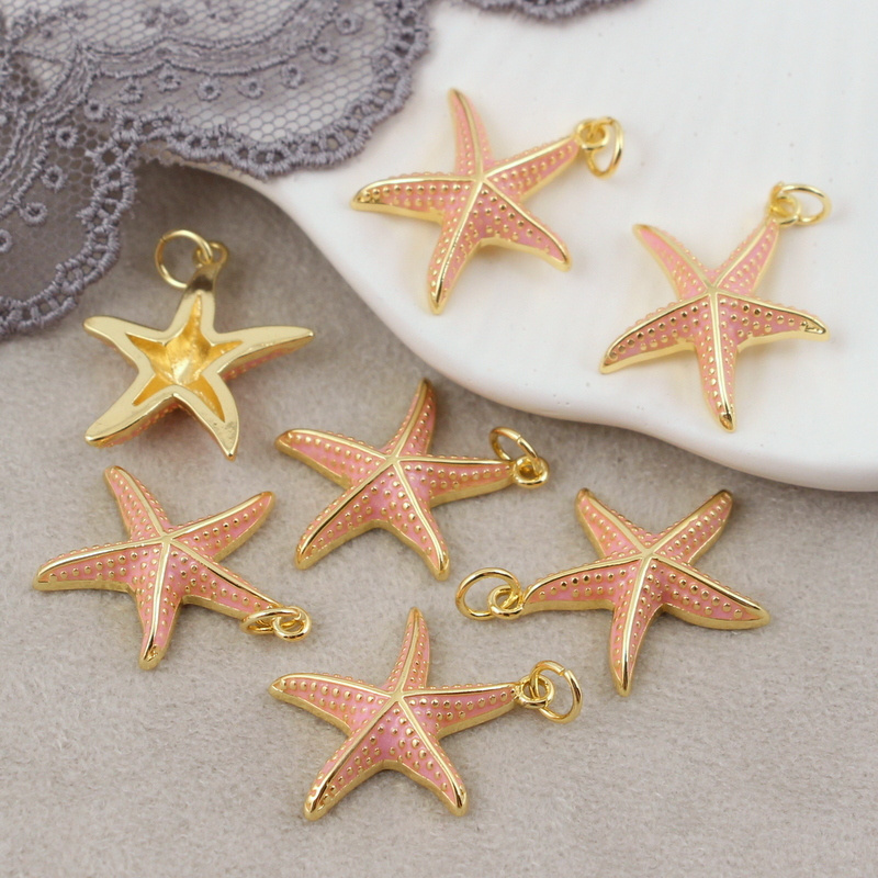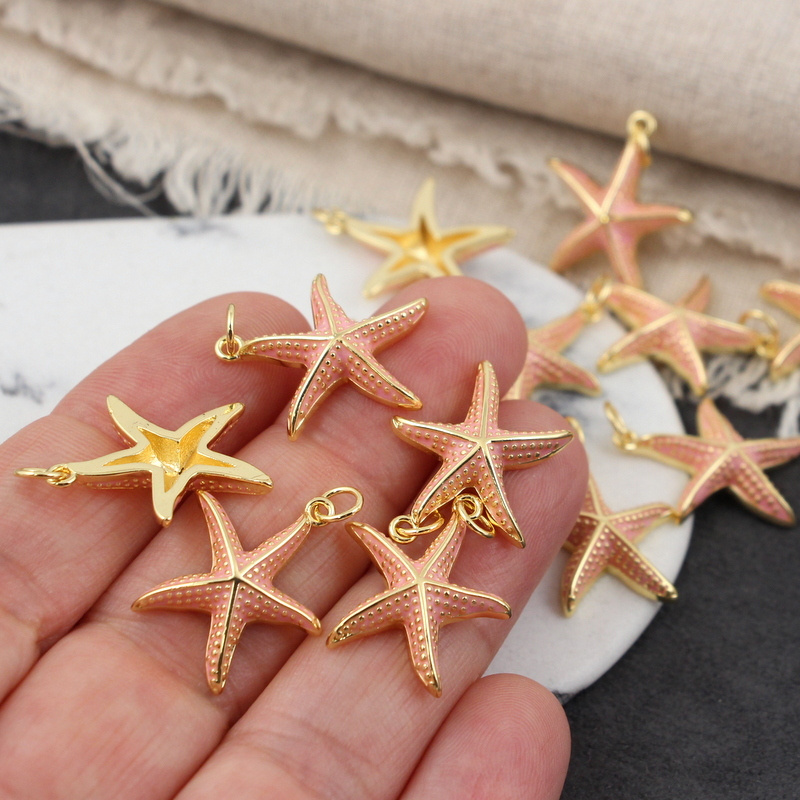 Zawieszka rozgwiazda mosiądz złocony emaliowana różowa 18mm