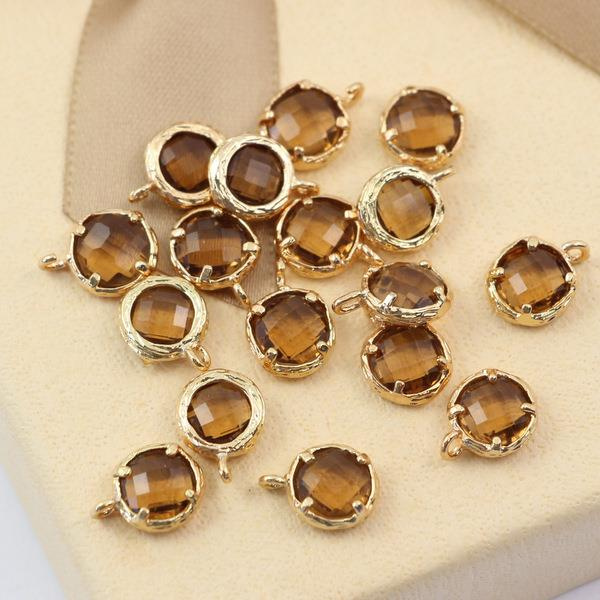Zawieszka szklana w delikatnie fakturowanej, złotej oprawie. Do bransolet, wisiorów i naszyjników.