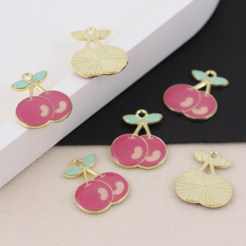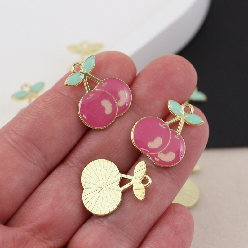 Zawieszka złota emaliowana wiśnia owoce 21x17mm