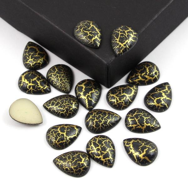 OpisMałe, lekkie kaboszony w kształcie łezki - markizy do naklejania i obszywania. Oryginalny efekt crackle ze złotymi spękaniami. Polecamy na kolczyki - kaboszony są bardzo lekkie.